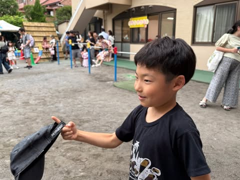 行き先も決めずノープランで遊歩道を走ってたら、歩武が通ってた幼稚園で、たまたま祭りをやってて、「どうぞ〜」なんて声をかけてもらったから寄ってみた^_^